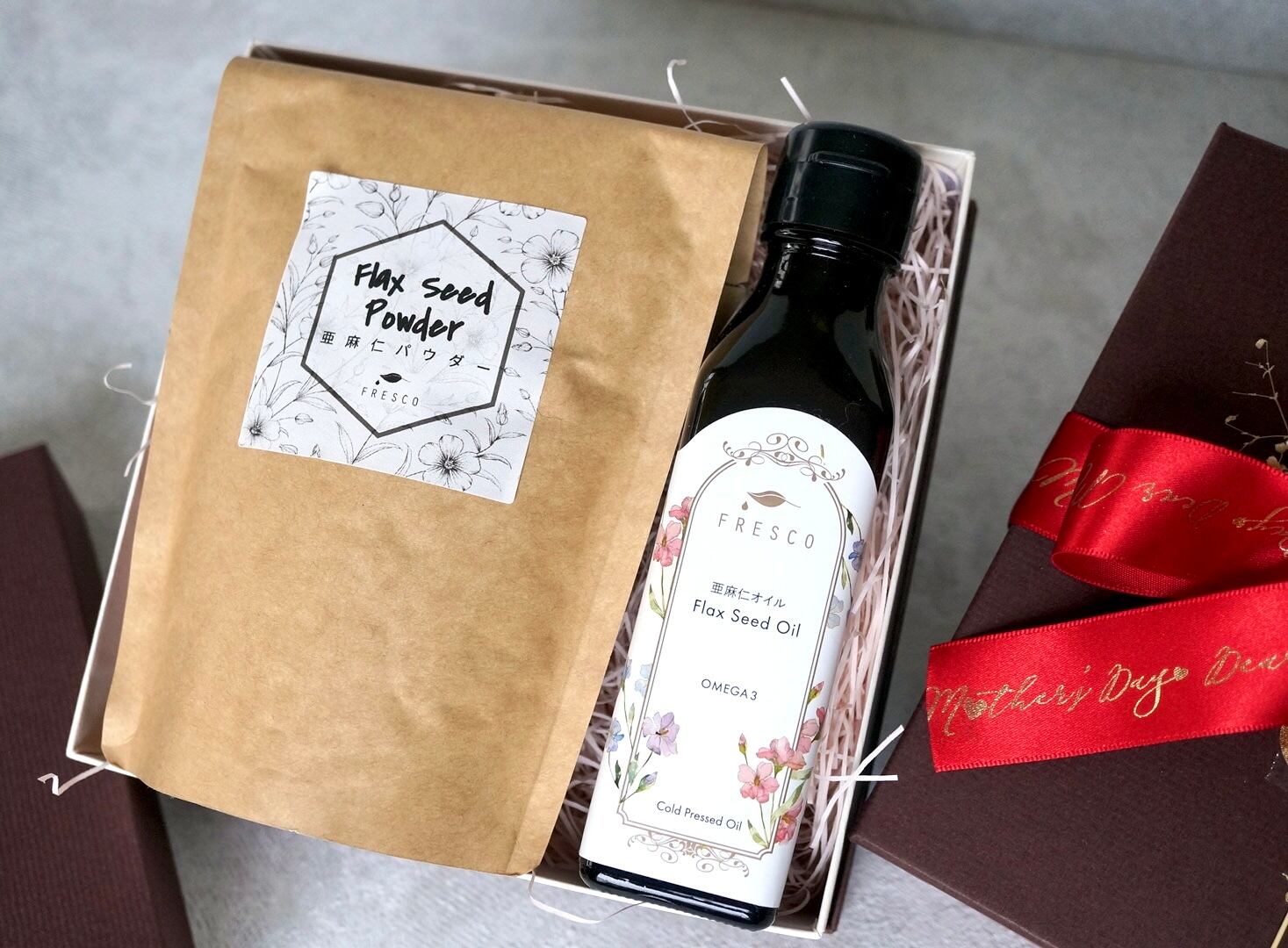 亜麻仁オイルと亜麻仁パウダーに含まれる健康成分には、女性に嬉しい美肌効果や、血管美人効果があり、いつまでも健康で美しくいてもらいたいお母様にぴったりの贈り物。