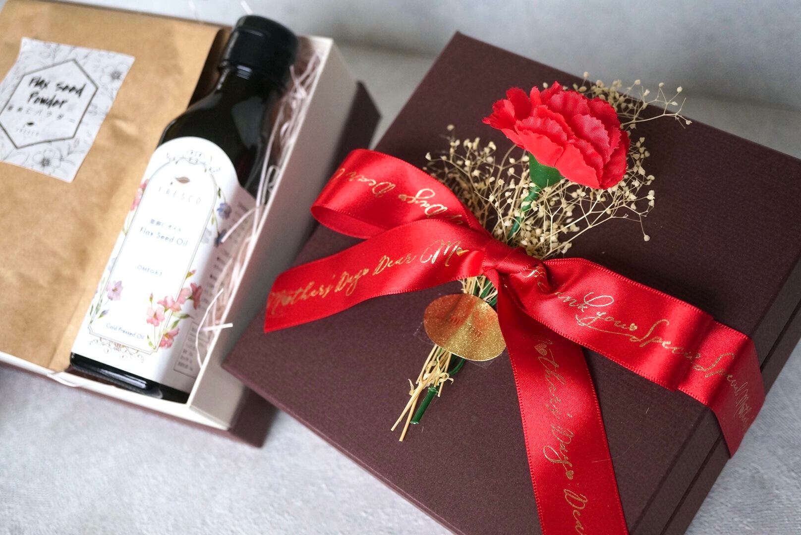 母の日限定ギフト「搾りたて亜麻仁オイル&亜麻仁パウダー」を母の日特別仕様のギフトラッピングで販売します!